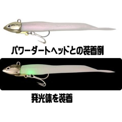 また細身ボディは失速しにくいロングキャストを可能にし、より遠くのポイントを狙えます。ボディ素材には魚の好む強い匂いと味のカプセルを配合。バイトから吐き出すまでの時間を稼ぎ、より確実なフッキングへと導きます。ジグヘッドと発光体の装着を容易にする2つのガイドホール、フックをセットしやすいセンターラインを採用し、現場での手早いセッティングをサポート。さらにエコギア「パワーダートヘッド」との組み合わせで、最高のダート性能を発揮します。