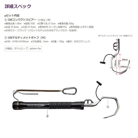 GMコンパクトスピアー + アルティメットギャフ(M)セットは、ショアゲームで大型魚を仕留めるためにコンパクトでありながら優れた捕獲性能を具現化したオリジナルランディングツールセットです。