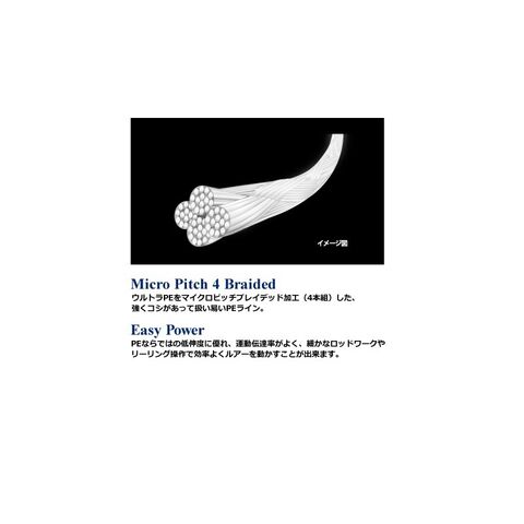 ウルトラPEをマイクロピッチブレイデッド加工(4本組)した、強くコシがあって扱い易いPEライン。