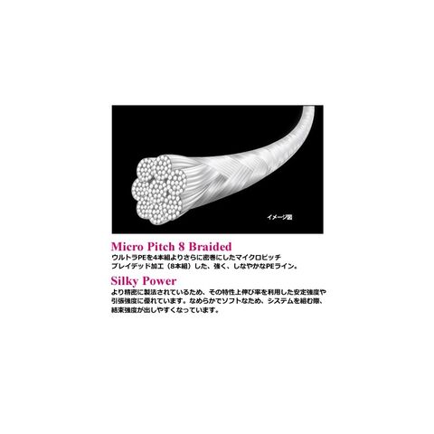 ウルトラPEを4本組よりさらに密巻にしたマイクロピッチブレイデッド加工(8本組)した、強く、しなやかなPEライン。