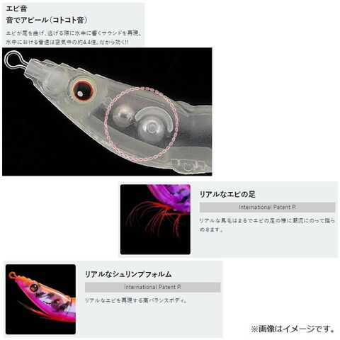 大物対応「パラソル仕様」さらにエビが尾を曲げ、逃げる際に水中に響くサウンドを再現した、エビ音ラトル入り。