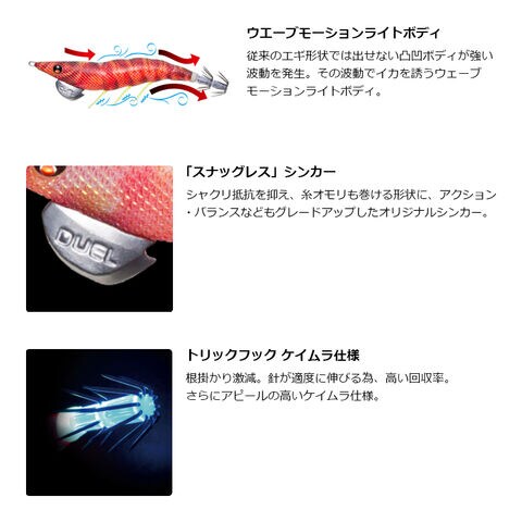 従来のエギ形状では出せない凸凹ボディが強い波動を発生。
