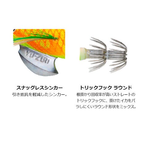 掛けたイカをバラしにくいラウンド形状をミックス。
