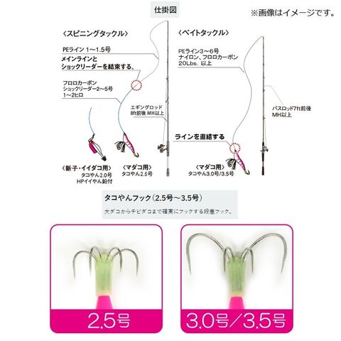 ◎シャローや根掛かりの多いエリアは2.5号/3.0号。ディープや潮の早いエリアは3.5号をご使用ください。