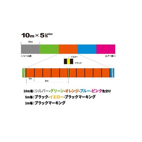 デュエル ハードコアX8 300m 1.2号 5色イエローマーキング