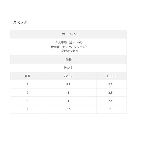 ●鈎、パーツ:キス専用(金)(赤)/夜光留(ピンク、グリーン)/逆付けラメ糸