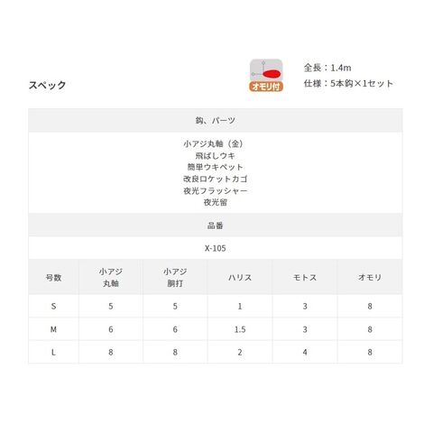 ササメ X-105 ボウズのがれ飛ばしサビキ S