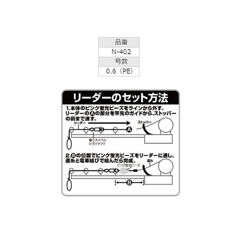 リーダーのAの部分を竿先のガイドから、ストッパーの前まで通す。