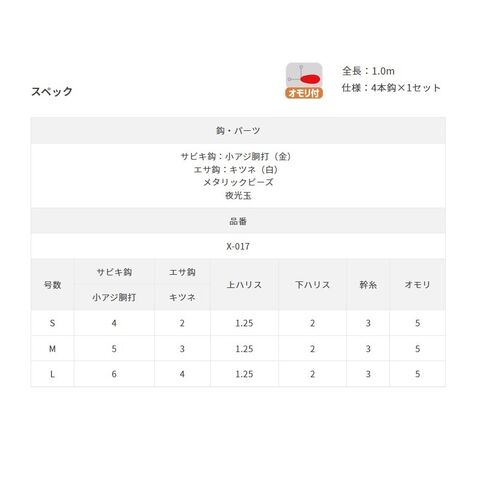 ●鈎:サビキ鈎:小アジ胴打(金)、エサ鈎:キツネ(白)