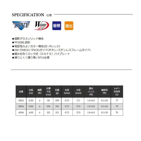 極軟グラスソリッドを採用し、食い渋るターゲットの繊細なアタリを見逃さずに掛けれます。