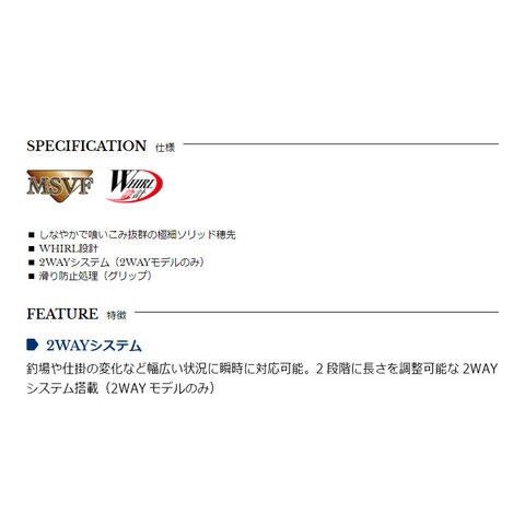 しなやかな喰い込みの良いソリッド穂先を採用し、軽量で扱い易い操作性を持っています。