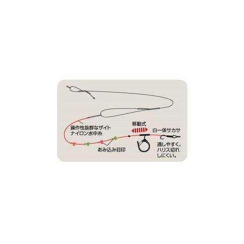 扱作性が抜群なザイトナイロン水中糸、あみ込み目印、白一体サカサ、チタンチューブ鼻かん使用。