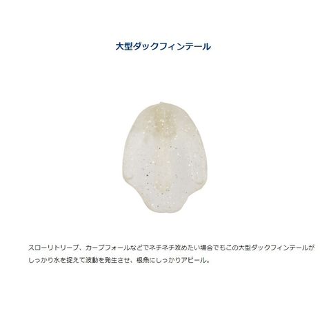 スローリトリーブ、カーブフォールなどでネチネチ攻めたい場合でもこの大型ダックフィンテールがしっかり水を捉えて波動を発生させ、根魚にしっかりアピール。