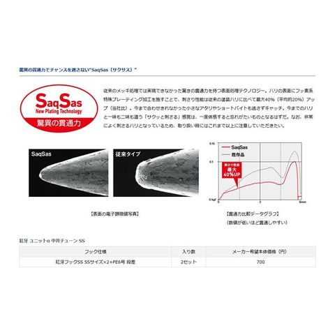 ●フック仕様:紅牙フックSS SSサイズ×2+PE6号 段差