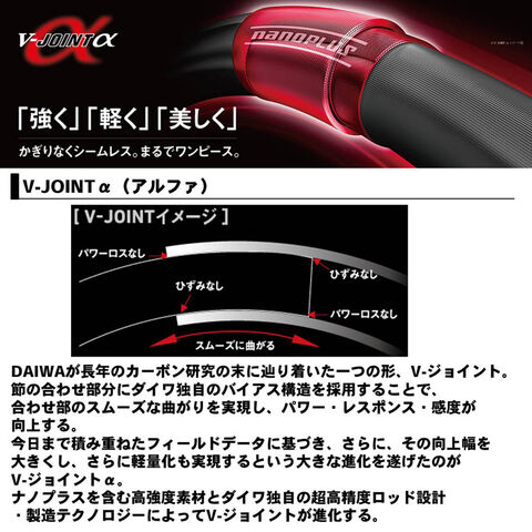 ナノプラスを含む高強度素材とダイワ独自の超高精度ロッド設計・製造テクノロジーによってV-ジョイントが進化する。