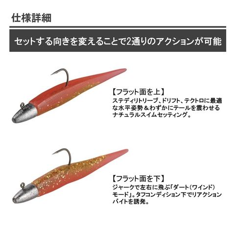 さらに、シーバスジグヘッドSSを使用し、ワームのフラット面を下にしてセットすれば、