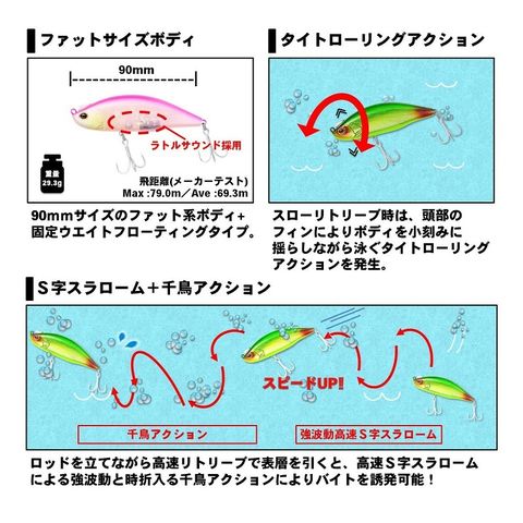もちろんただ巻きでも、ランカーシーバスの好むワイドS字スラロームアクションでターゲットを魅了する。