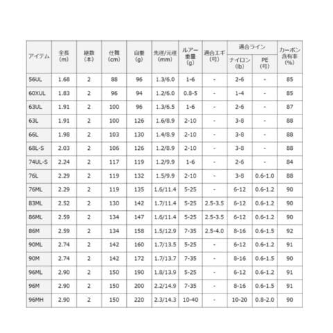 56UL~76Lは細かなアクションに向いたライトゲームタイプを、