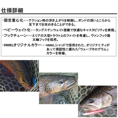 エリアの大型トラウトとのファイトを考慮し、ヴァンフック製太軸フックを採用。
