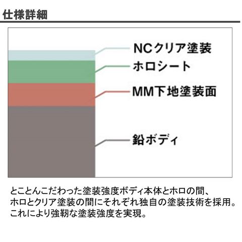 とことんこだわった塗装強度ボディ本体とホロの間、ホロとクリア塗装の間にそれぞれ独自の塗装技術を採用。