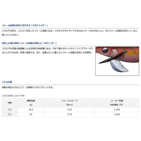 山田ヒロヒトが考える釣る為のエギを具現化。高重量と独特のボディー形状により想像を超えた飛距離を実現した。さらに、スタビライザーと低重心設計により揺ぎない安定感を実現。圧倒的な飛距離、安定したフォールがもたらす相乗効果で今まで捕れなかったイカを狙い打ち。ダート系エギとは一線を画す今までにない新しいエギの提案です。