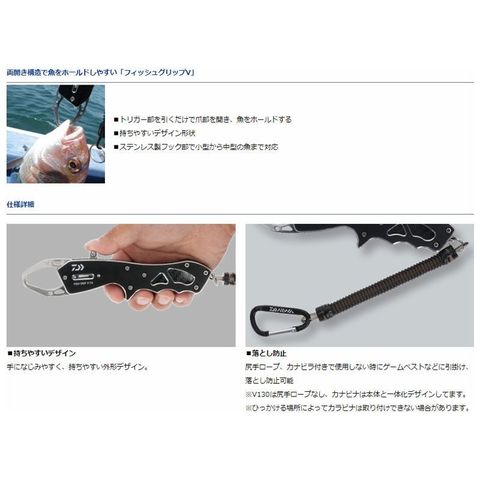 ※V130は尻手ロープなし、カナビナは本体と一体化デザインしてます。