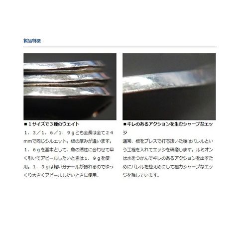 1.6gを基本として、魚の活性に合わせて早く引いてアピールしたいときは1.9gを使用。
