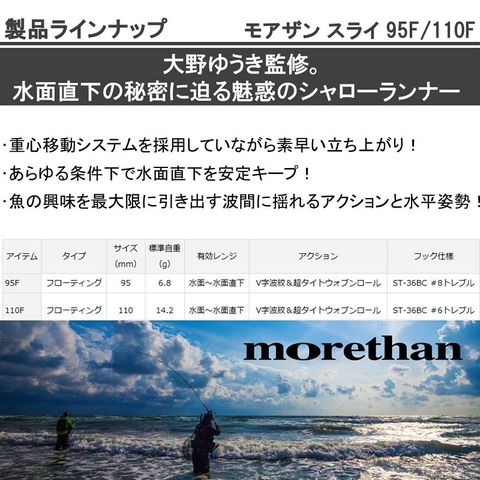 細身で小柄なフローティングミノーでありながら、重心移動ウエイトを採用することにより広い射程距離を確保し、なおかつ素早い立ち上がりを実現。