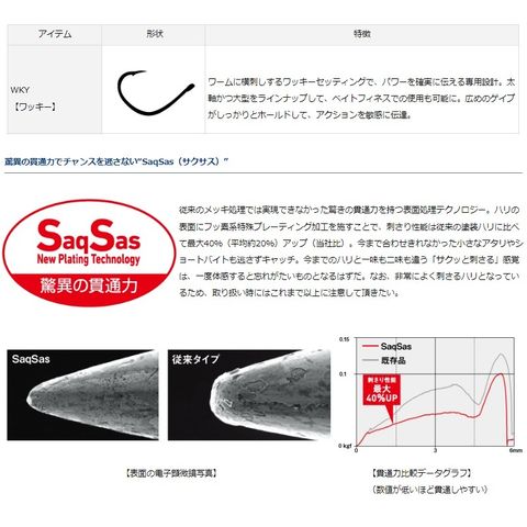 フック表面の滑りを向上させた「サクッと刺さる」サクサス加工で、