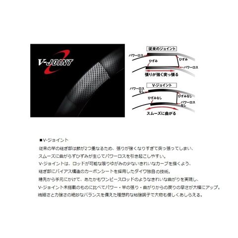 V-ジョイント未搭載のものに比べてパワー・竿の張り・曲がりからの