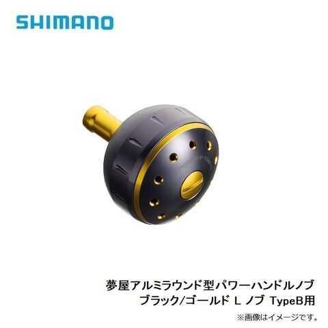 シマノ 夢屋アルミラウンド型パワーハンドルノブ ブラック/ゴールド L ノブ TypeB用
