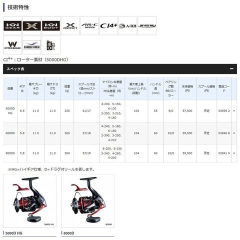 ※HG=ハイギア仕様、D=ドラグ付リールを表します。