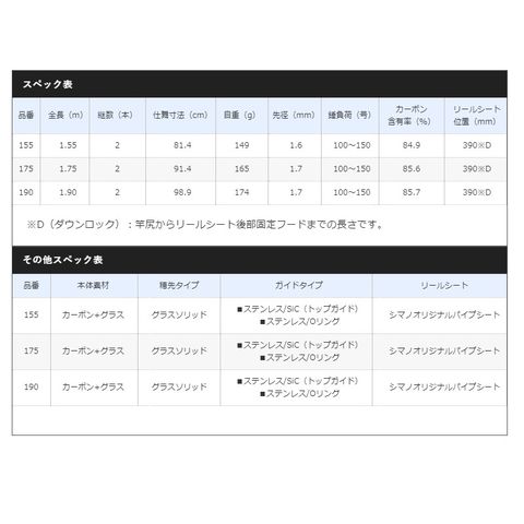 ※D(ダウンロック):竿尻からリールシート後部固定フードまでの長さです。