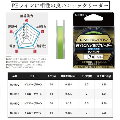 シマノ NL-I33Q リミテッドプロ ナイロン リーダー サスペンド 2.5号 イエローグリーン