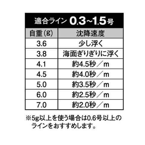 ※5g以上を使う場合は、0.6号以上のラインをおすすめします