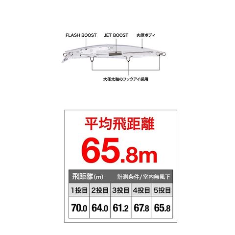 ジェットブーストが強い向かい風でも飛距離を稼ぎ、強い浮力がサラシの中でも波に漂わせることを可能にします。