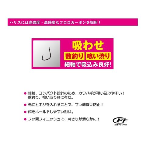 ・細軸、コンパクト設計のため、カワハギが吸い込みやすい!