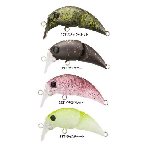 従来のデッドスロー対応設計に加え、喰わせのスイッチを入れやすく、ミスバイトを減らす目的の幅広リップを採用。