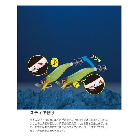 また、わずかな潮の流れでエギがふらつくことで、ボトムステイでもしっかりイカを誘うことが可能です。