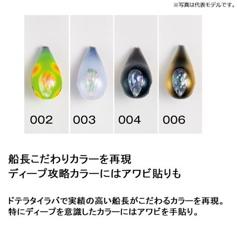 ドテラタイラバで実績の高い船長がこだわるカラーを再現。