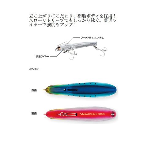 新メタルドライブの樹脂ボディは、水を受ける大きなフラット面でルアーのフォール速度を抑えます。