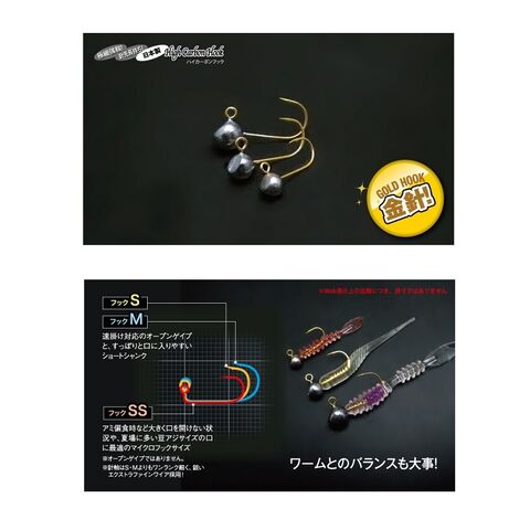 ●S・Mは速掛け対応のオープンゲイプ、SSは小さなアタリに対し刺さりをフォローする針先ネムリ仕様