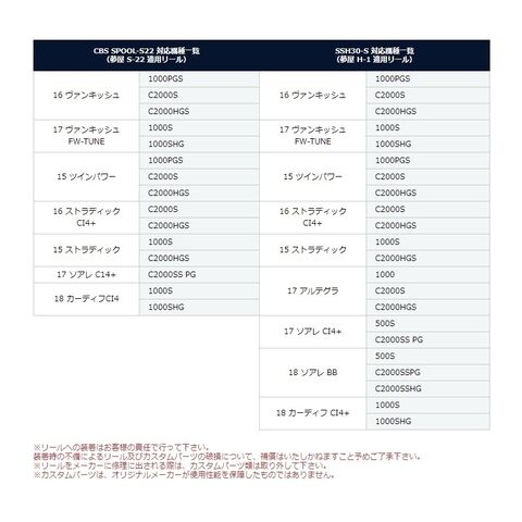 装着時の不備によるリール及びカスタムパーツの破損について、補償はいたしかねますこと予めご了承下さい。