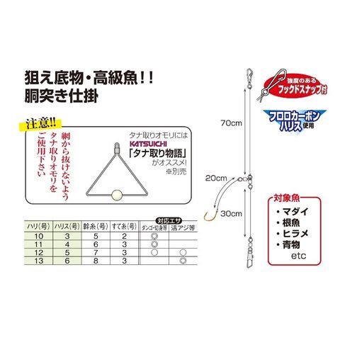 底にはりつくヒラメ等の底物、根魚狙いに効果的な胴つき仕掛です。