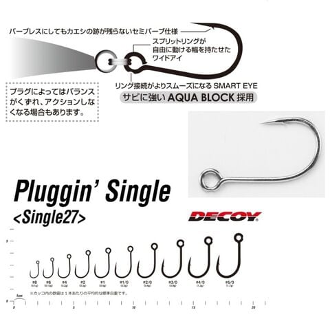 プラグ系ルアー専用のシングルフック。トリプルフックに比べ、一旦フックアップするとはずれる確率が激減。