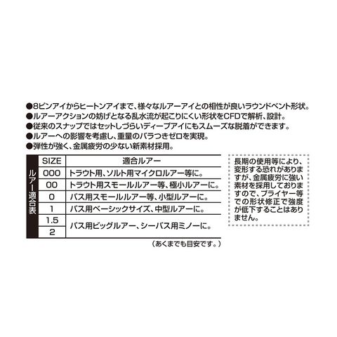 ルアーの性能を引き出す、軽量ハイクオリティースナップ。