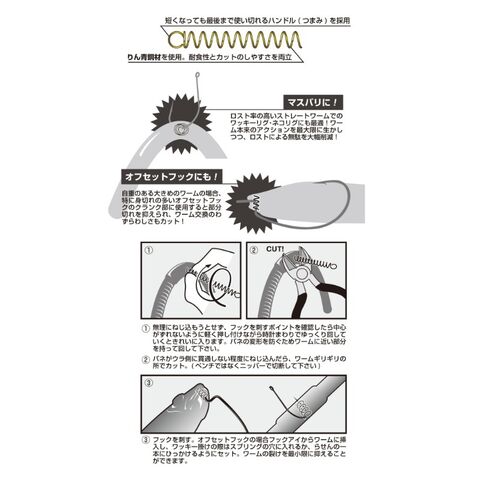 ワームにねじ込みニッパー等でカット。そしてフックをセット。