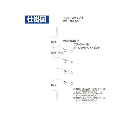 胴打加工と直貼りしたホロシールのフラッシングに加え、妖しく光る白フラッシャーでベイトの食性を刺激します。