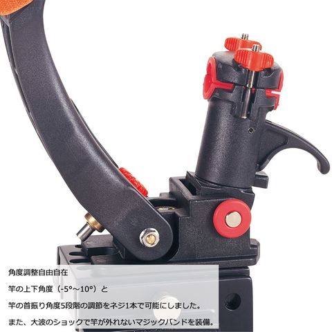 竿の上下角度(-5°から10°)と竿の首振り角度5段階の調節をネジ1本で可能にしました。