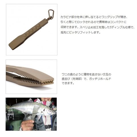 アジ・アオリイカ・タチウオ・メバル等のソルトウォーターフィッシングで、手を汚したり傷つけたりせずに安全・スピーディに獲物をホールドできます。